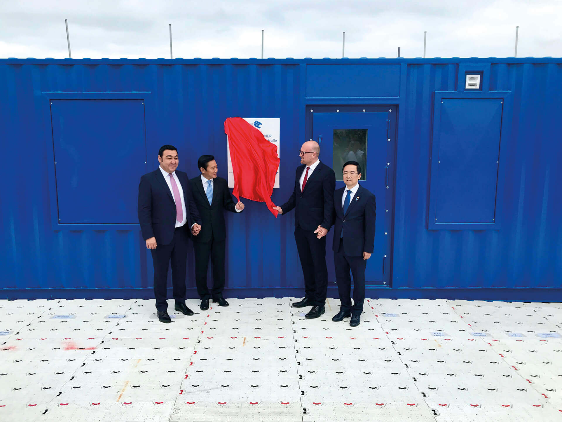 Eröffnungsfeier der Ausstellung „Blue Container“ in Duisburg und Treffen mit dem Oberbürgermeister Duisburg, Sören Link, dem Generalkonsul in Düsseldorf Feng Haiyang und dem Botschafter von Kasachstan.