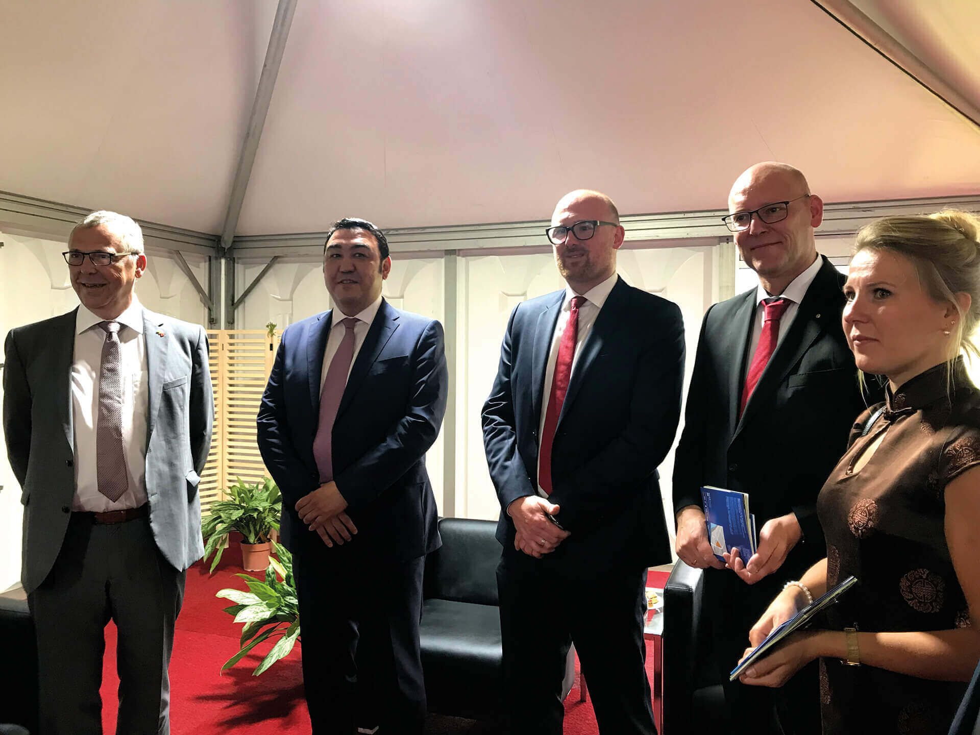 Eröffnungsfeier der Ausstellung „Blue Container“ in Duisburg und Treffen mit dem Oberbürgermeister Duisburg, Sören Link, dem Generalkonsul in Düsseldorf Feng Haiyang und dem Botschafter von Kasachstan.