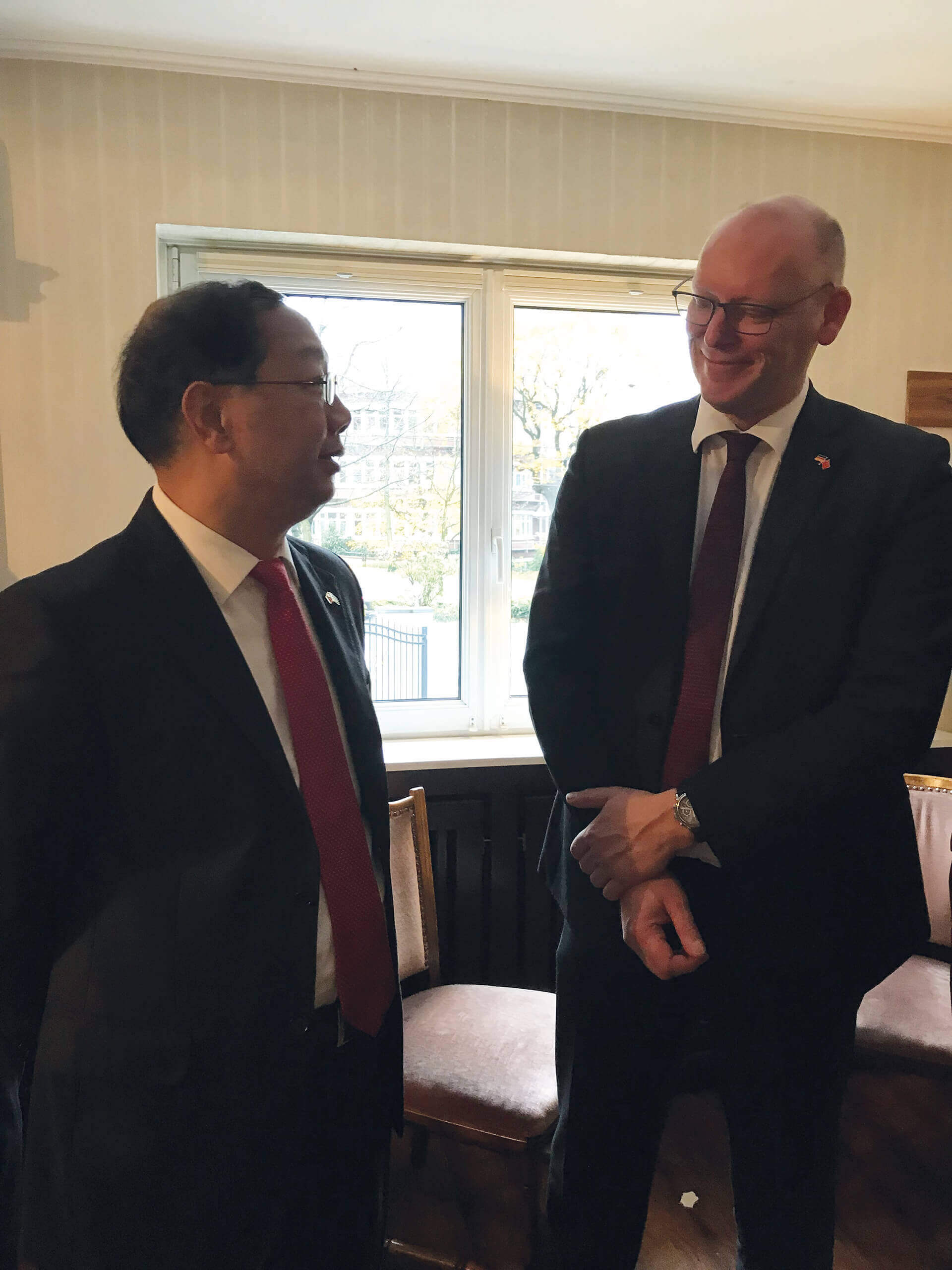 Lunch mit dem Chinesischen Botschafter in Deutschland, Shi Mingde anlässlich seines Besuchs des Konfuzius Instituts Duisburg
